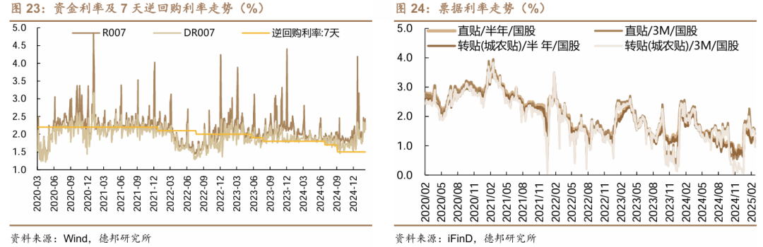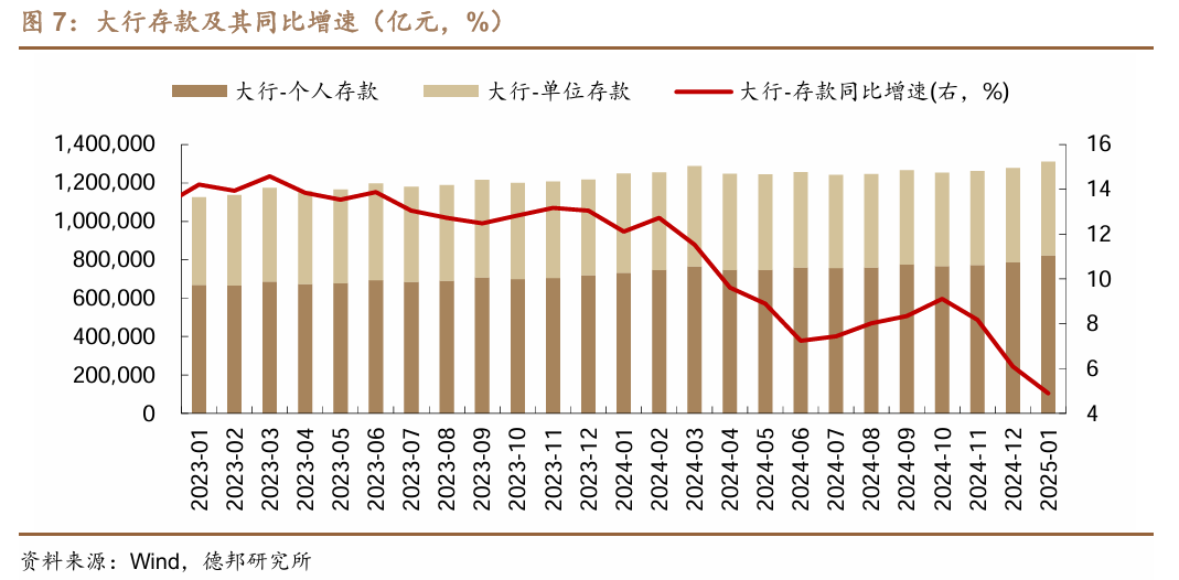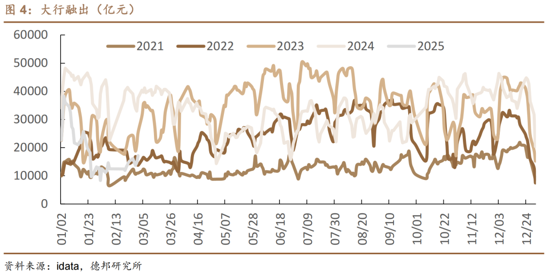 为何限制不少,但恶果有限?主要如故与大行繁忙一般性欠债联系。从近期大行入款同比增速可以昭彰看到,在前年10月以来增速在继续下降,从2024年10月的9.11%一都降至本年1月的4.90%,尤其是企业入款降幅更为权贵,自前年6月以来,企业在大行入款增速就继续位于负向区间,9月后跌幅小幅收窄,本年1月又发达为昭彰的跌幅走阔,下至同比-6%的增速水平。可以看到目下大行欠债端的较大压力,也表目下近期大行融出限制的昭彰回落。除欠债端压力外,加上净买入国债也尚未重启,以及降准破灭,意味着央行并未向大行投放长钱,短期限买断式逆回购投放恶果发达一般。