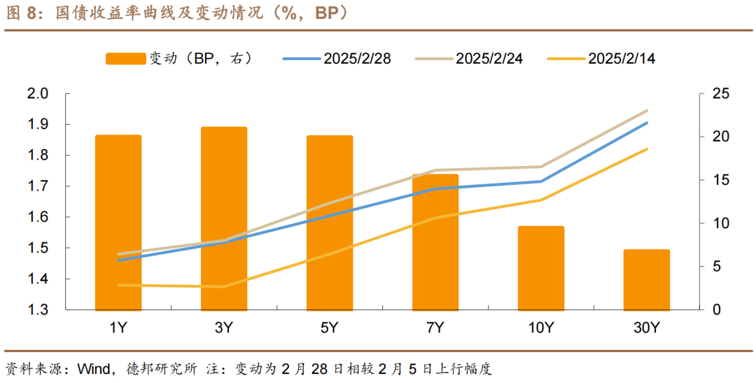 2月债市资历了昭彰回调,尤其是下旬以来基金赎回成为缓和焦点,目下照旧回稳。从节后2月5日至2月28日,1Y和10Y国债收益率辨别上行19.98BP和9.45BP至1.46%和1.72%,时间30Y国债利率最高上至1.95%,全体来看短端上行幅度更大,弧线熊平。纯债基金也从2月17日开动发达出昭彰赎回特征,24-25日达到赎回岑岭,就最近三个往明天来看,纯债基金赎回照旧基本回稳。