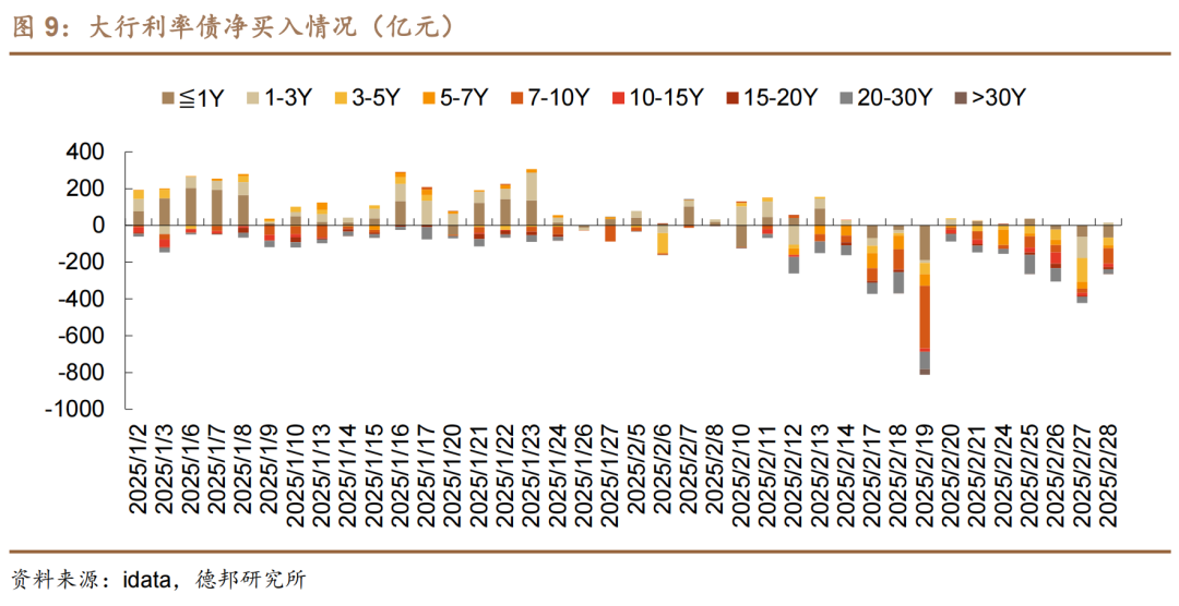 尽管赎回情况基本回稳,关联词阛阓结构发生了一定变化,往日的接盘力量发达弱化。近期陪同债市回调,银行体系赎回债基有一定例模,卖债量昭彰增多,以大行现券贸易情况为例,2月14日于今(2/28),大行累计净卖出利率债限制近3200亿元,日度来看贯串发达净卖出,结构上看各期限均有不同进度净卖出。意味着,在往日“每调买机”的行情中,饰演接盘一方的银行体系,在目下欠债端压力之下,连续才智也相对有限,阛阓同质性操格调险上行。