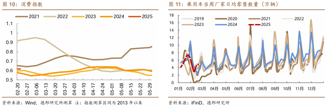一方面,开年以来高频消耗指数显现消耗动能好于往日两年同期水平。左证咱们在基本面追踪系列测算的消耗指数,收尾2月22日,消耗指数分位数为83.4%,相较年头上行8.2个百分点,全体景气度发达较好,且开年以来继续高于2023和2024年同期水平;乘用车消耗也昭彰好于前年同期水平,收尾2/23,较前年同期上行26.12%;计谋端来看,本年消耗补贴已在年头拉开序幕,1月8日《对于2025年加力扩围奉行大限制开拓更新和消耗品以旧换新计谋的见知》发布,在汽车置换更新、家电居品、手机和家装消耗等规模进行扩围补贴。