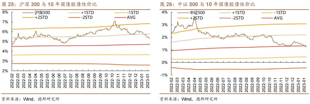 本周股债性价比上行。具体而言,2月24日-2月28日,本周沪深300与10年国债股债性价比、中证500与10年国债股债性价比辨别较上周变动15.95BP、10.13BP。